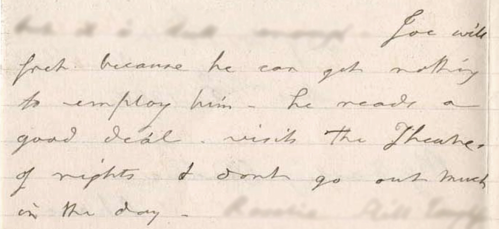 Years went by with boredom for Joe, who did not need to work due to his brother’s wealth. In this letter from Mary Ann she speaks of his boredom. Image Source: ALPLM