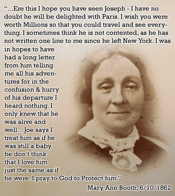 In early 1862, Joseph Booth unexpectedly left his home with hardly a word to his family. He eventually made his way to Europe where Edwin was on tour, and from there to Australia.