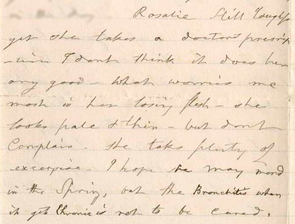 In a letter written by Mary Ann Booth to her granddaughter Edwina, Mrs. Booth mentions Rose’s ongoing ill health. Image Source: ALPLM