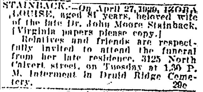 Izora Gouldman, the woman Willie Jett was courting in Bowling Green, did not marry Jett. This would prove to be a blessing for her as Jett later died of syphilis. Izora died in 1929 and is buried in Baltimore.