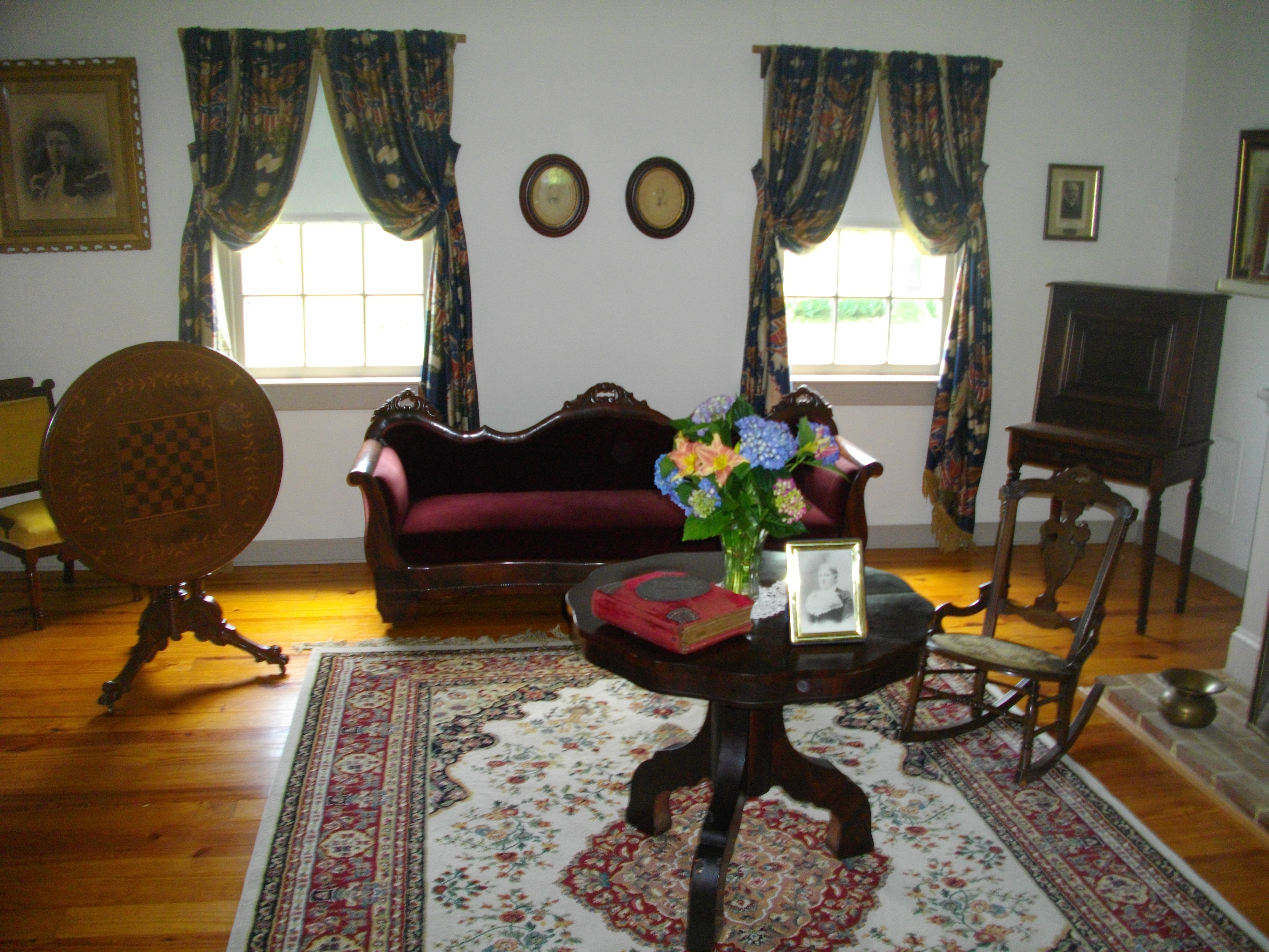 The parlor of the Dr. Samuel A. Mudd House. John Wilkes Booth laid upon the sofa in the center while Dr. Mudd treated his leg. Image Source: Dave Taylor June 2011