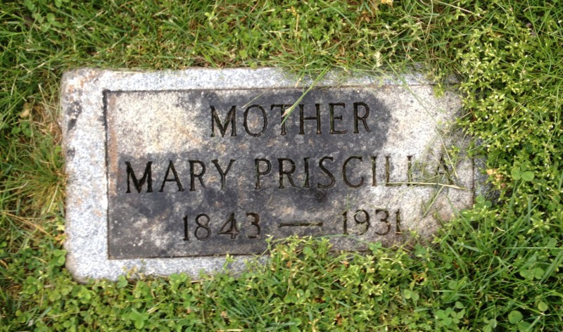 Mary Priscilla Richter’s, Hartman Richter’s wife, grave in Neelsville Presbyterian Church Cemetery in Germantown, MD. Image Source: Dave Taylor April 2013