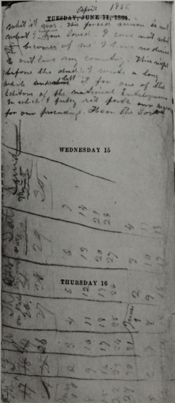 The rest of the page contains a hand drawn calendar of the days from April 17th to June 18th. We know, of course, that Booth did not get to use much of this calendar.