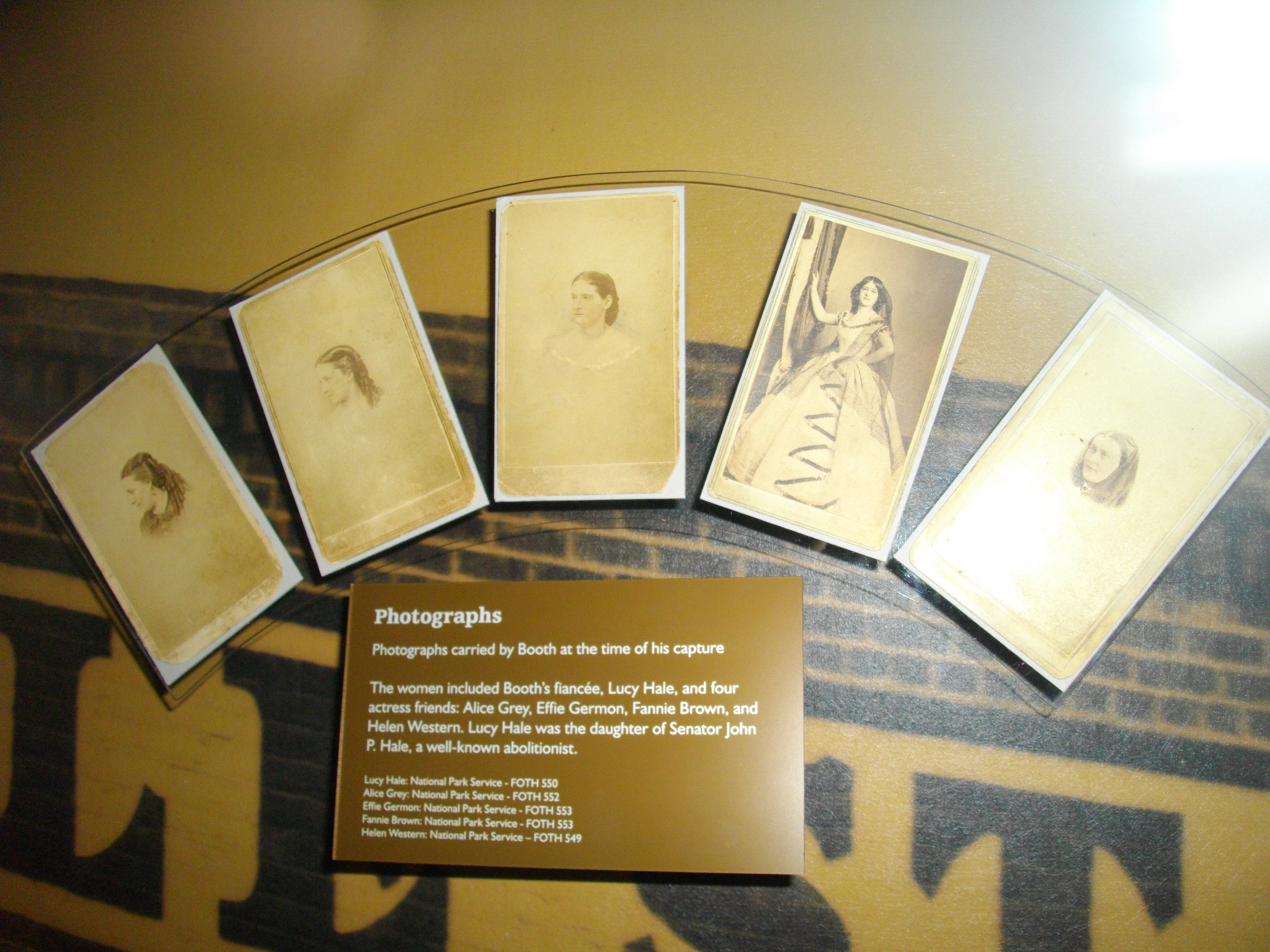 The carte de visites of Lucy Hale, Alice Grey, Effie Germon, Fannie Brown, and Helen Westen found on Booth’s body upon his death at the Garrett’s farm. On display at the Ford’s Theatre Museum. Image Source: