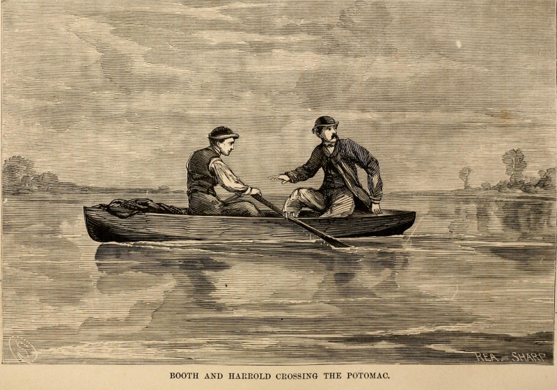Depiction of David Herold and John Wilkes Booth crossing the Potomac river. Image Source: History of the United States Secret Service by L. C. Baker