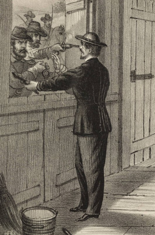 Drawing of the capture of David Herold at Garrett’s farm on April 26th, 1865 Image Source: LOC