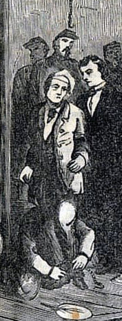 Drawing of David Herold on the scaffold before his hanging on July 7th, 1865. Image Source: National Polica Gazette