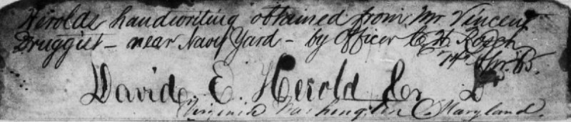 David Herold’s signature recovered by detectives during the investigation. Image Source: NARA