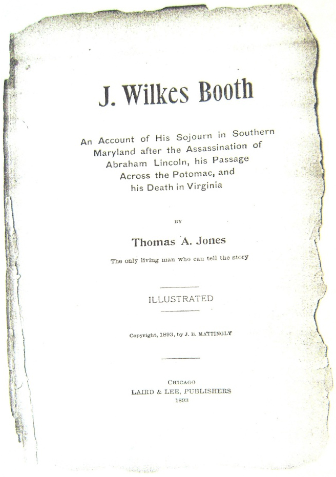 The cover page from Jones’ book about his involvement in Booth’s escape. It was in one of his books, that Samuel Cox Jr. later wrote notes in the margins about his conversation with Dr. Mudd. Image Source: J. Wilkes Booth by Thomas A. Jones