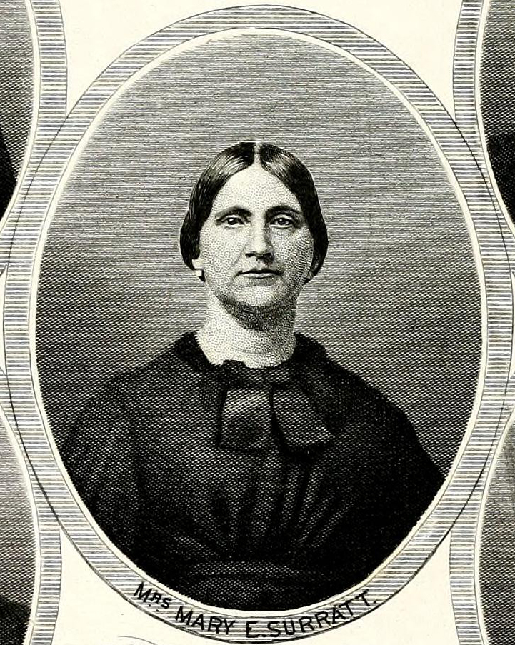 Drawing of Mary Surratt in the “Ring of Conspirators” based on the “fair, fat and forty” photograph. Image Source: The Trail of the Conspirators by Ben Pitman
