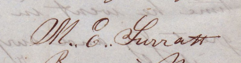 Signature of Mary Eugenia Surratt. Image Source: Dr. Blaine Houmes