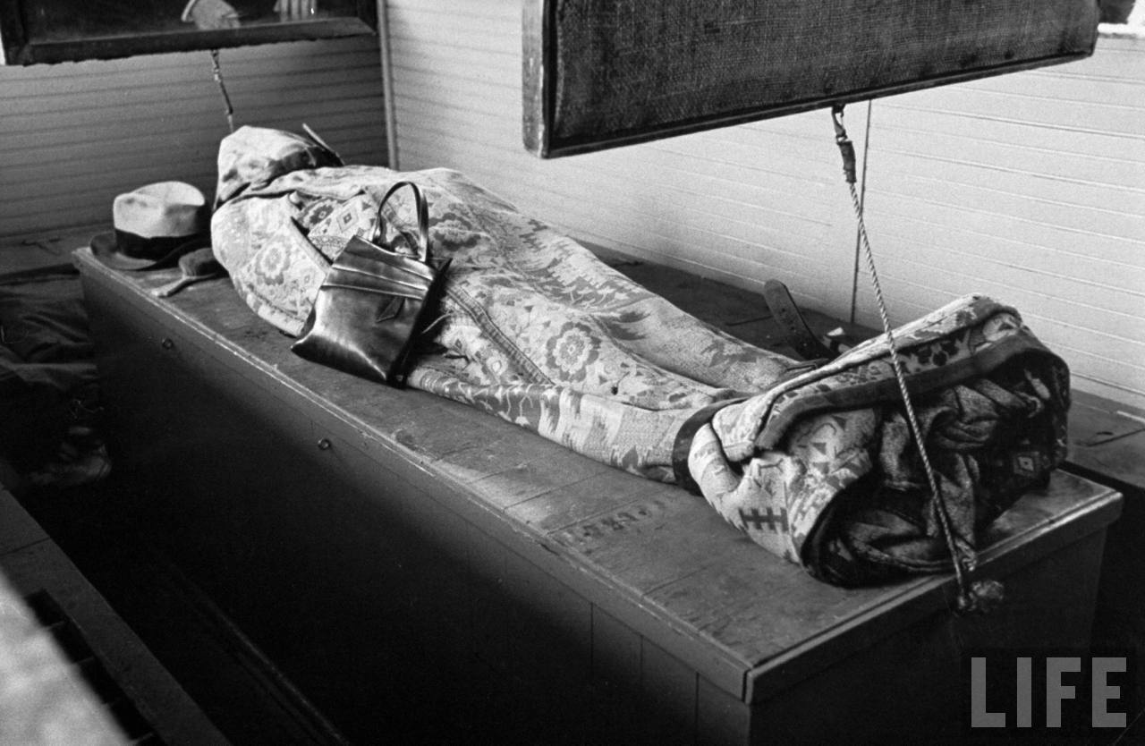The mummy of David E. George, claimed to be that of an escaped John Wilkes Booth, on display at a carnival sideshow in 1937. Image Source: Life Magazine