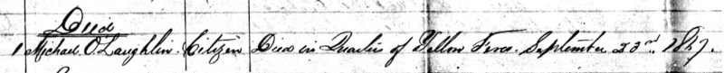 Record of Michael O’Laughlen’s death in the Fort Jefferson records. Image Source: Robert K. Summers