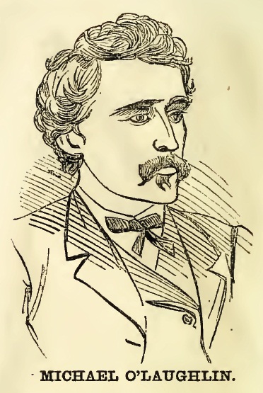 Drawing of Michael O’Laughlen based on the mug shot photos. Published in the booklet, “Trial of the assassins and conspirators for the murder of Abraham Lincoln” by Barclay and Co. 1865