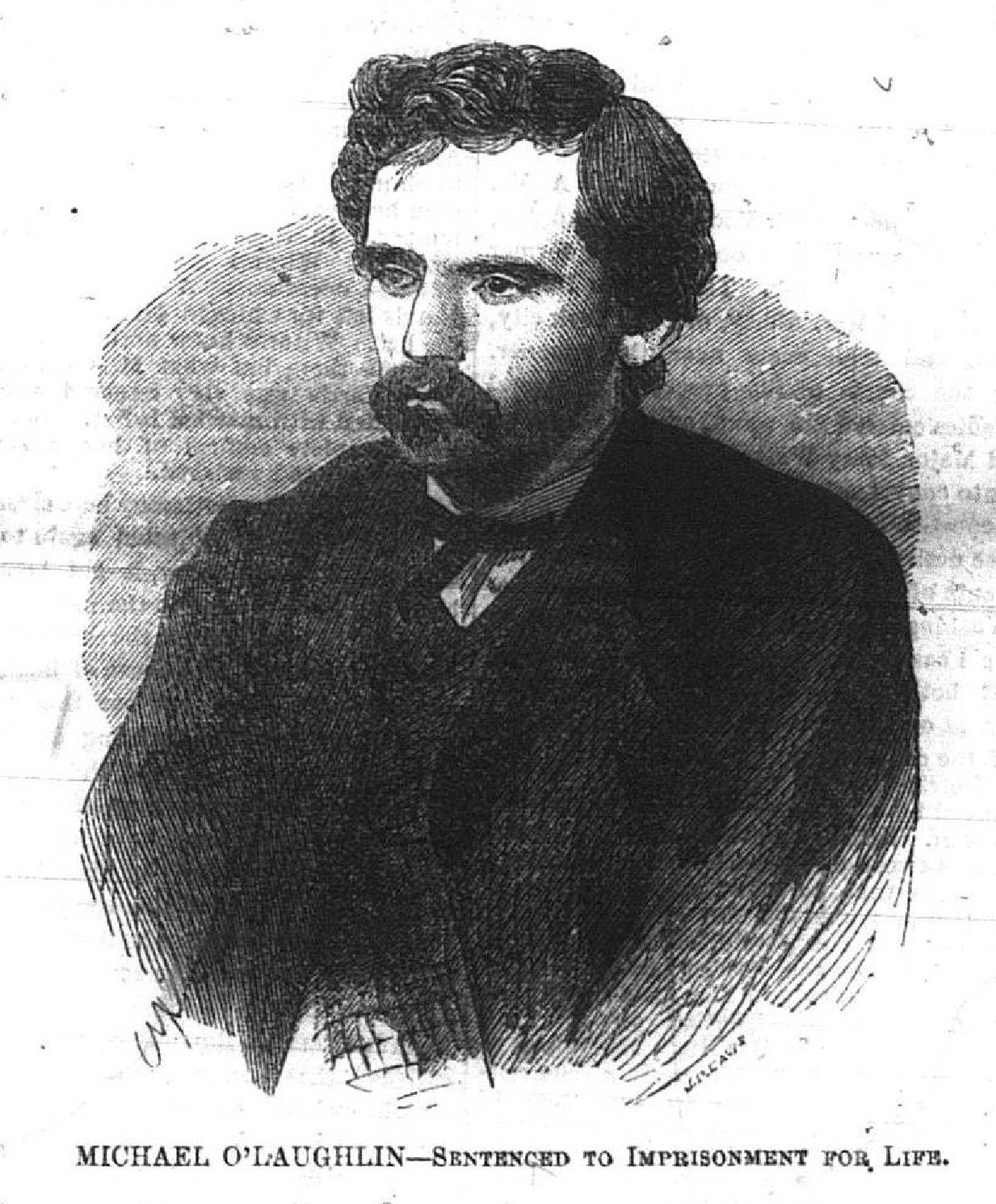 Drawing of Michael O’Laughlen based on the mug shot photographs. Image Source: Betty Ownsbey from the Washington Weekly Chronicle