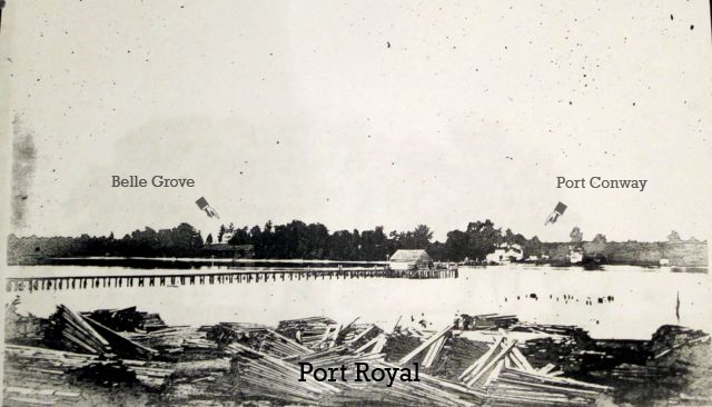 A view of Port Conway and Belle Grove (the birthplace of President Madison) from Port Royal, VA. Image Source: Belle Grove Plantation 1906