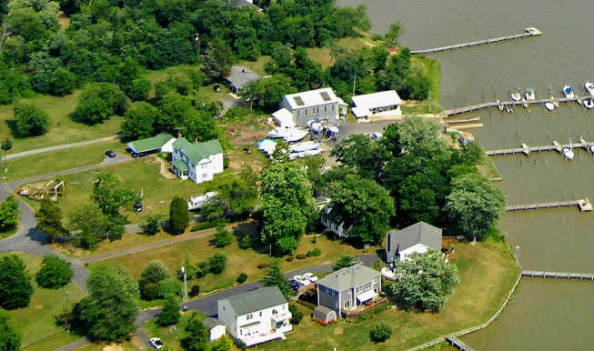 The side of the modern Quesenberry home as seen from the air. Image Source: Marinas.com