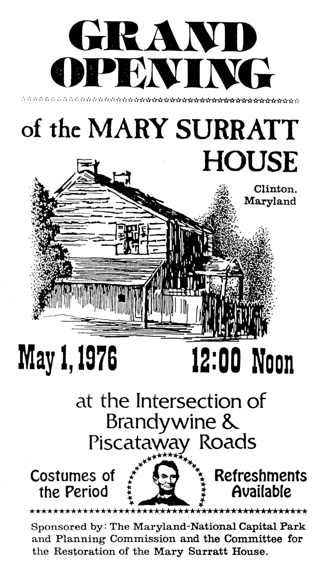 Flyer for the opening of the restored Surratt House Museum. Image Source: Surratt House Museum
