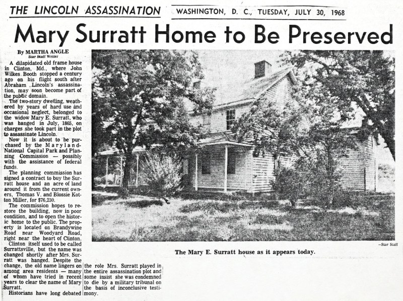A newspaper article about the restoration of the Surratt House Museum. Image Source: Washington Star