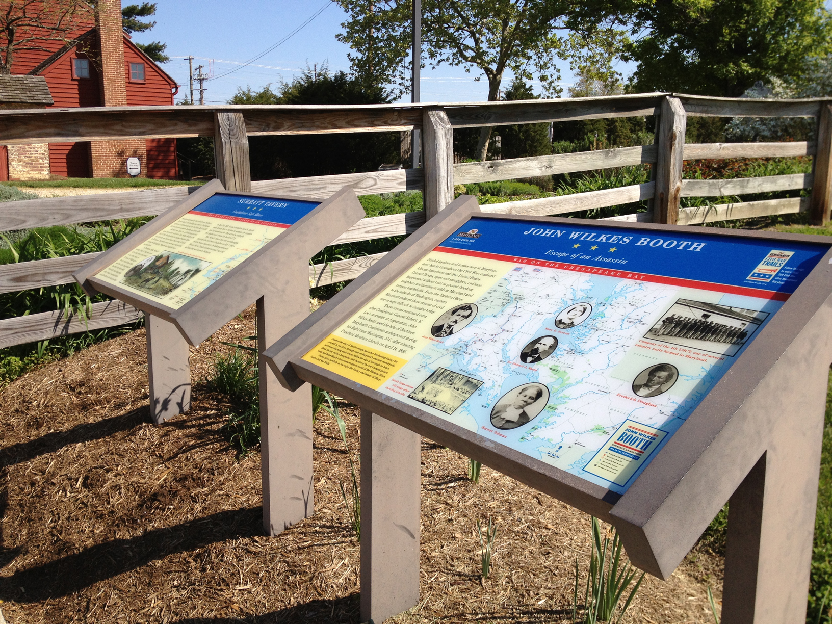 The Maryland Civil War Trails signs on the grounds of the Surratt House Museum. Image Source: Dave Taylor April 2013