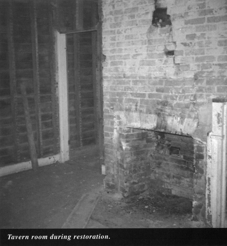 Interior of the tavern room while it was being restored. Image Source: Surratt House Museum