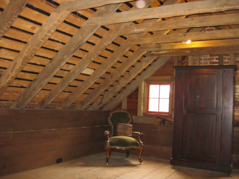 Interior of the loft in the Surratt House Museum. It is currently interpreted to be a slave’s bedroom. Image Source: Dave Taylor May 2009
