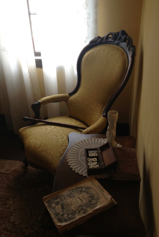 Chair inside of the parlor at the Surratt House Museum in Clinton, MD. Image Source: Dave Taylor Sept. 2013