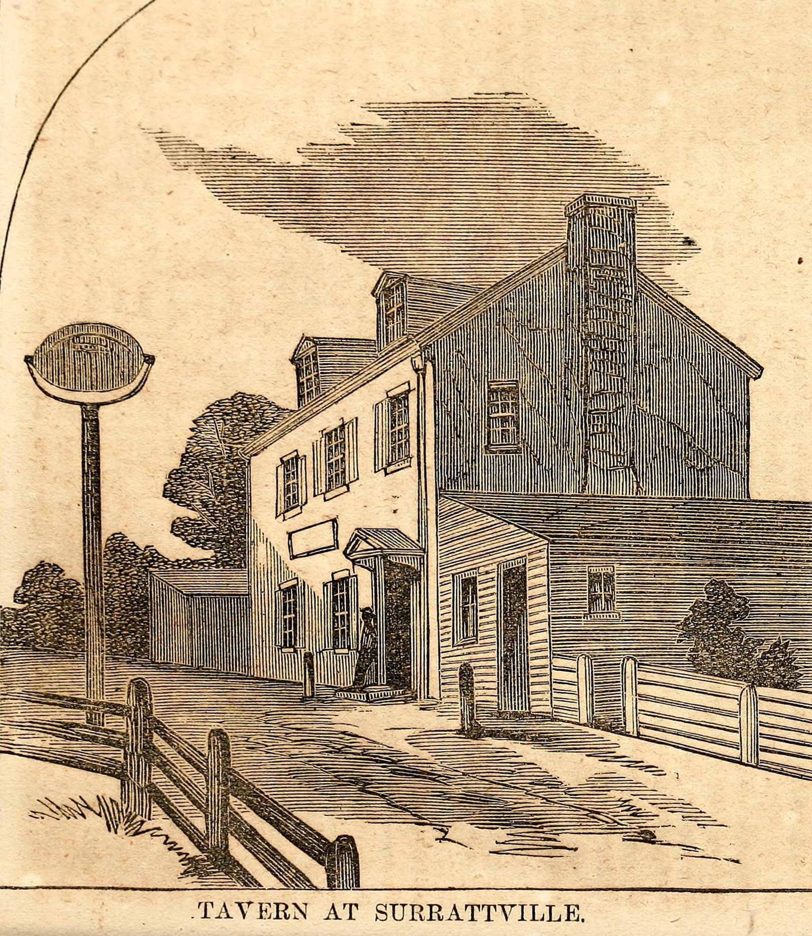 Engraving of the Surratt Tavern from a penny dreadful about John Surratt. Image Source: Life and extraordinary adventures of John H. Surratt.