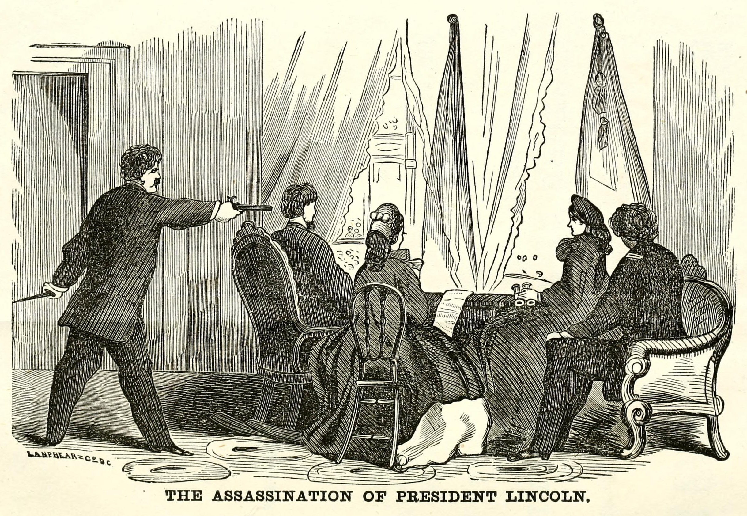 John Wilkes Booth assassinating President Abraham Lincoln in his box at Ford’s Theatre on April 14th, 1865.