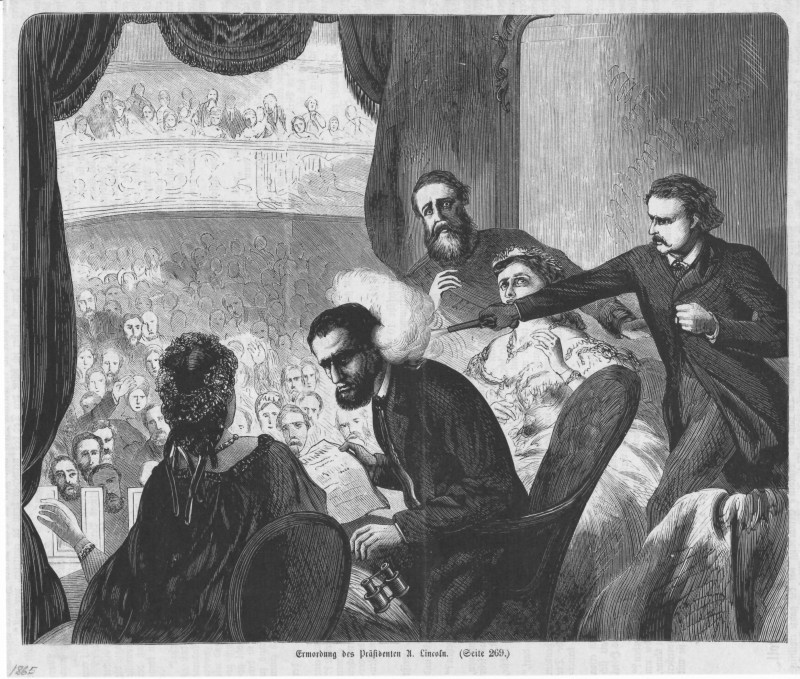 John Wilkes Booth assassinating President Abraham Lincoln in his box at Ford’s Theatre on April 14th, 1865. Image Source: Unknown German Book