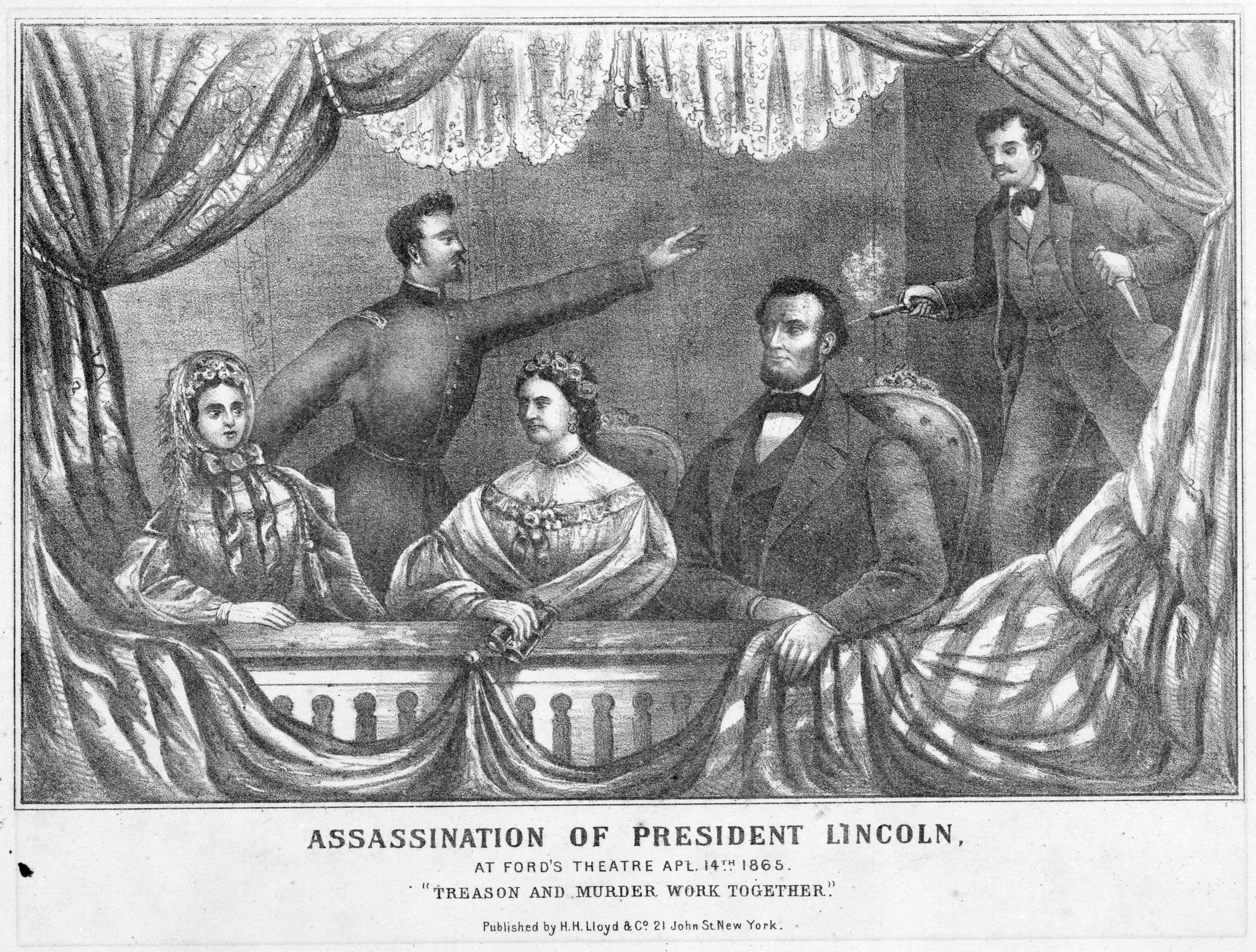 John Wilkes Booth assassinating President Abraham Lincoln in his box at Ford’s Theatre on April 14th, 1865.
