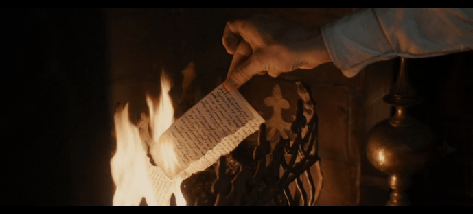 Near the end of the episode, we see Edwin Stanton reading through the pages of Booth’s diary, which was recovered from his body at the Garrett farm. Eddie Stanton sees his father reading it and asks him, “Did Booth write down his motives?” followed by, “Is there anything in there that could stain your reputation?” The elder Stanton tells his son not to worry about it, and Eddie leaves. We then watch as Sec. Stanton approaches the room’s fireplace, kneels down in front of the flames, rips pages from the diary, and burns them to ash.