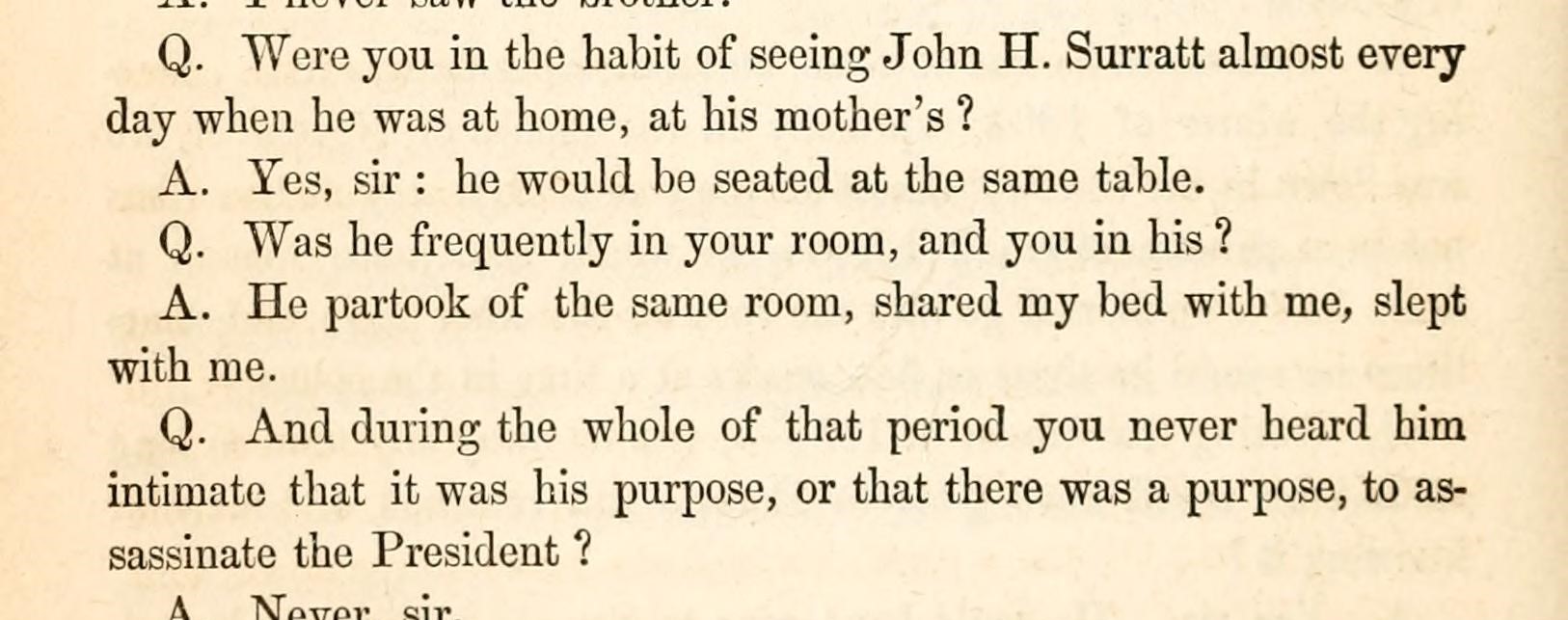 It is true that Weichmann testified about having slept with John Surratt. Here’s that part of his testimony.