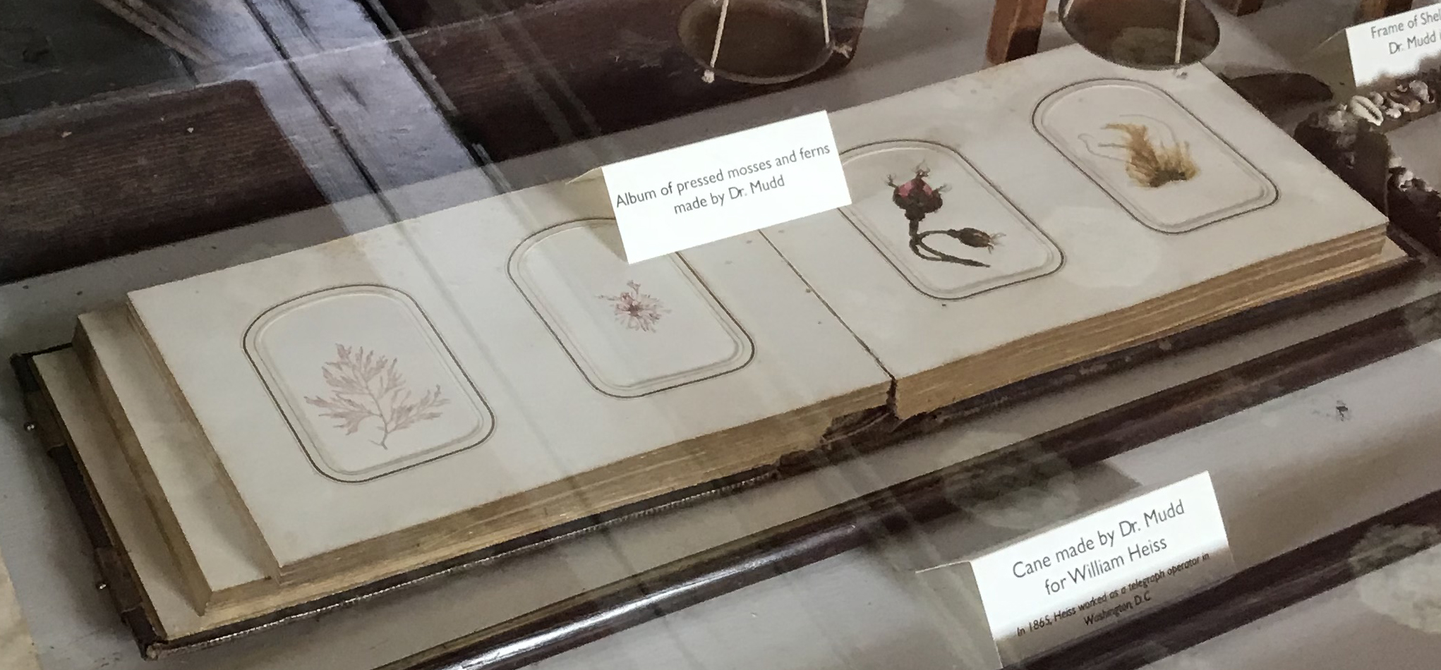 Ephemeral objects go far beyond humanmade creations. Nature is the largest producer of ephemera as everything living must inevitably die. We treasure the sweet blossoms that appear in springtime because we know that their existence is short lived. So much of the beauty behind a flower is because it is fragile and temporary. As the saying goes, “To every thing there is a season.” Dr. Mudd spent some time during his many seasons at Fort Jefferson attempting to preserve some of the naturally fleeting floral specimens in his tropical island prison. He collected several examples of mosses, ferns, and flowers from around the Dry Tortugas and pressed them into an album that generally housed photographs. The album can be found at the Dr. Samuel A. Mudd House Museum alongside some of Dr. Mudd’s other creations from his imprisonment.