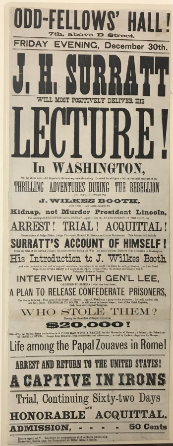 Broadside advertising John Surratt’s lecture