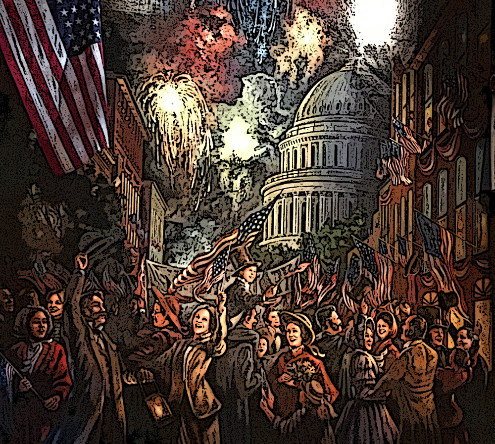 On the night of April 13, 1865, Washington, D.C. was a city of jubilation. The nation’s capital was decked out in beautiful displays of celebration and light. Described as the Grand Illumination, countless businesses and private homes burned candles and were lavishly decorated in order to mark the essential end of the Civil War due to Confederate General Robert E. Lee’s surrender to Union General Ulysses S. Grant on April 9th. The event brought many visitors to D.C. and the streets were filled with revelers until late into the night.