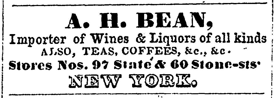Cara Bean was the daughter of Aaron Hook Bean and Maria Louise Remer. Aaron was a New Hampshire native who moved to New York City with his brother, Moses Dudley Bean. The two men entered into the liquor business and quickly became successful merchants. After a few years, Dudley left the partnership, leaving Aaron with a successful solo business.