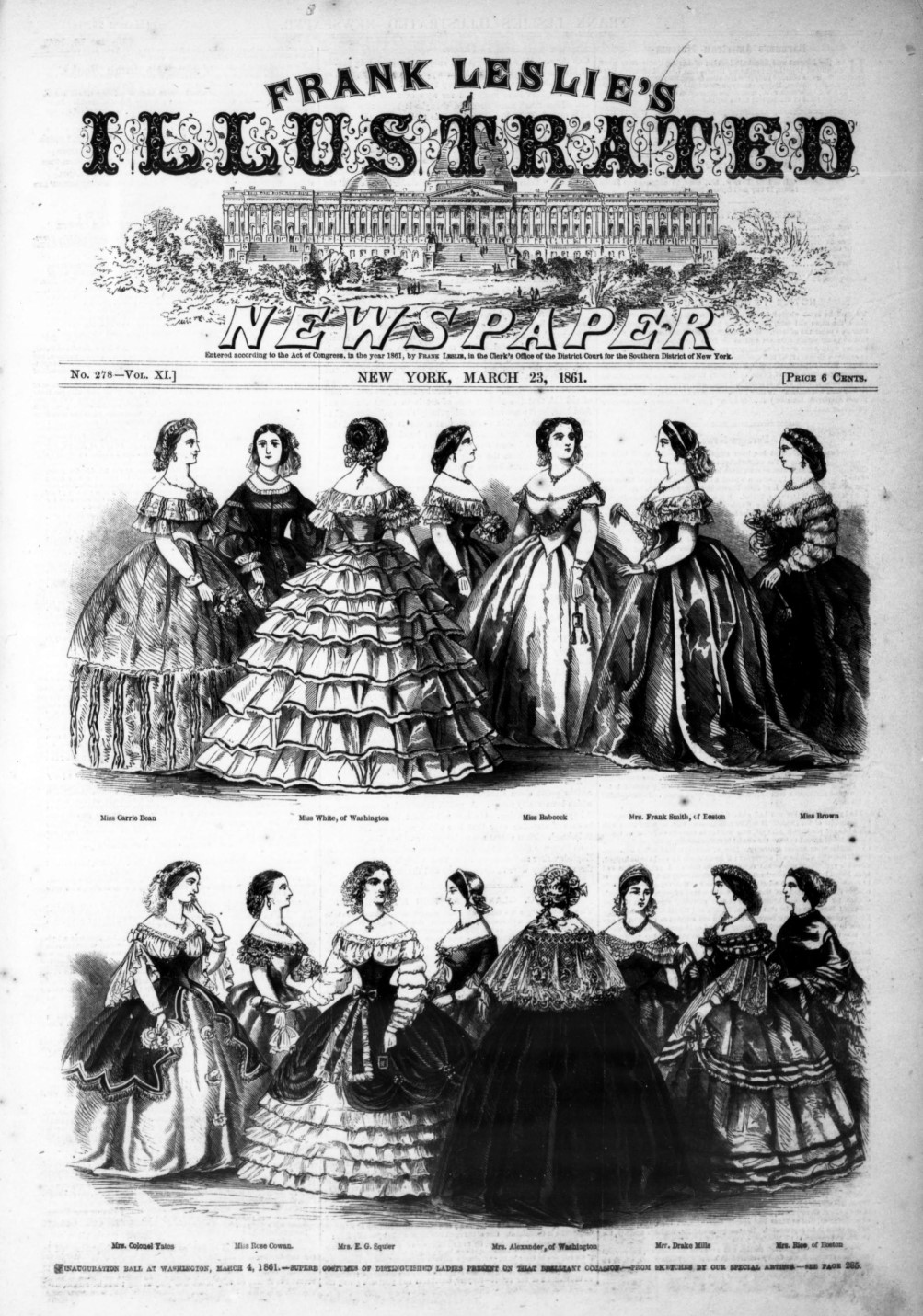 Blanche Butler was the beneficiary of Carrie Bean’s kindness in lending the young girl a dress and the two joined the other celebrants at the ball on March 4. But it was Carrie, not Blanche, who got her dress memorialized in the pages of Frank Leslie’s.