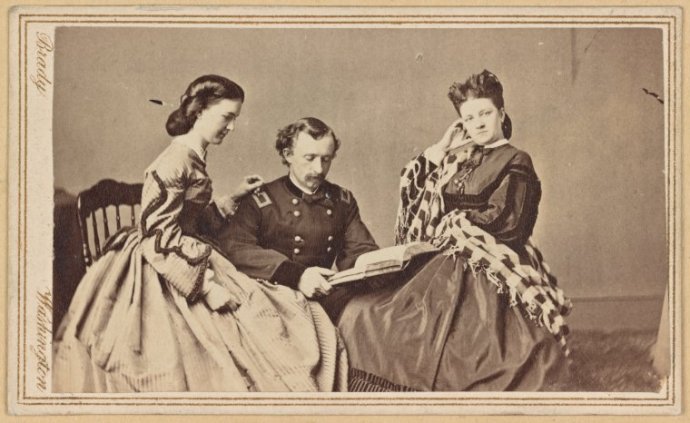 Cara Bean appears to have become quite close with the Custers. It is because of them that we actually have a picture of Cara Bean. According to photography expert D. Mark Katz, on October 23, 1864, Libbie, Custer, and “Cora” Bean posed together for this photograph in Mathew Brady’s studio in Washington: