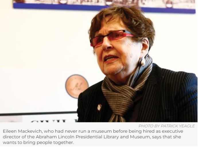 The director of the ALPLM is a political appointment and serves at the will of the Governor. In December 2010, Governor Pat Quinn appointed Eileen Mackevich to be the new director of the ALPLM. Dave Blanchette was the Public Information Officer for the IHPA and deputy director of the ALPLM. In an oral history recording with Blanchette from 2015, he related how, early on, those working for the ALPLM learned that they were in for a rough time with their new director. Mackevich was known to be difficult to work for, taking duties away from managers who had good relationships with lower-level staff in order to freeze them out and consolidate her power. Within a year of her hiring, several members of the staff had resigned, including Dr. Thomas Schwartz, who left to head the Herbert Hoover Presidential Library. Mackevich began having conflicts with the ALPLM’s governing agency, the Illinois Historic Preservation Agency. Using her own political connections, Mackevich began pushing for legislation to separate the ALPLM from the purview of the IHPA.