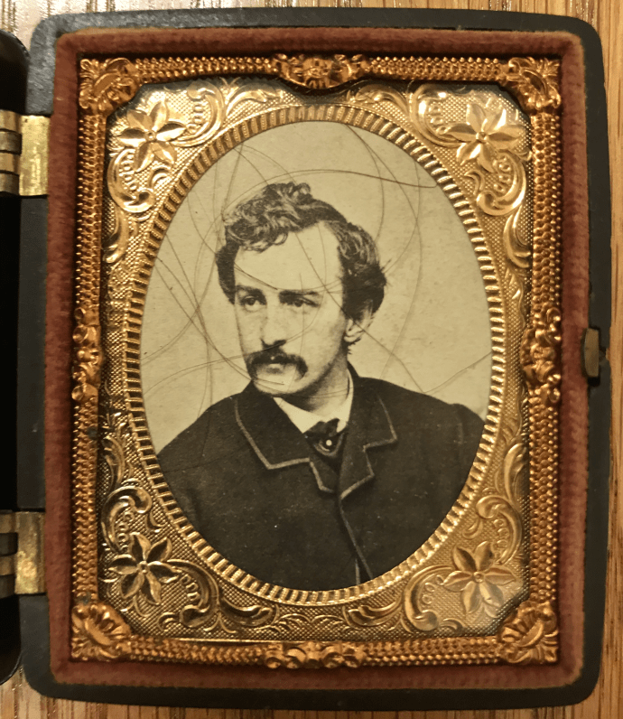 Strands of John Wilkes Booth’s hair encased with his photograph