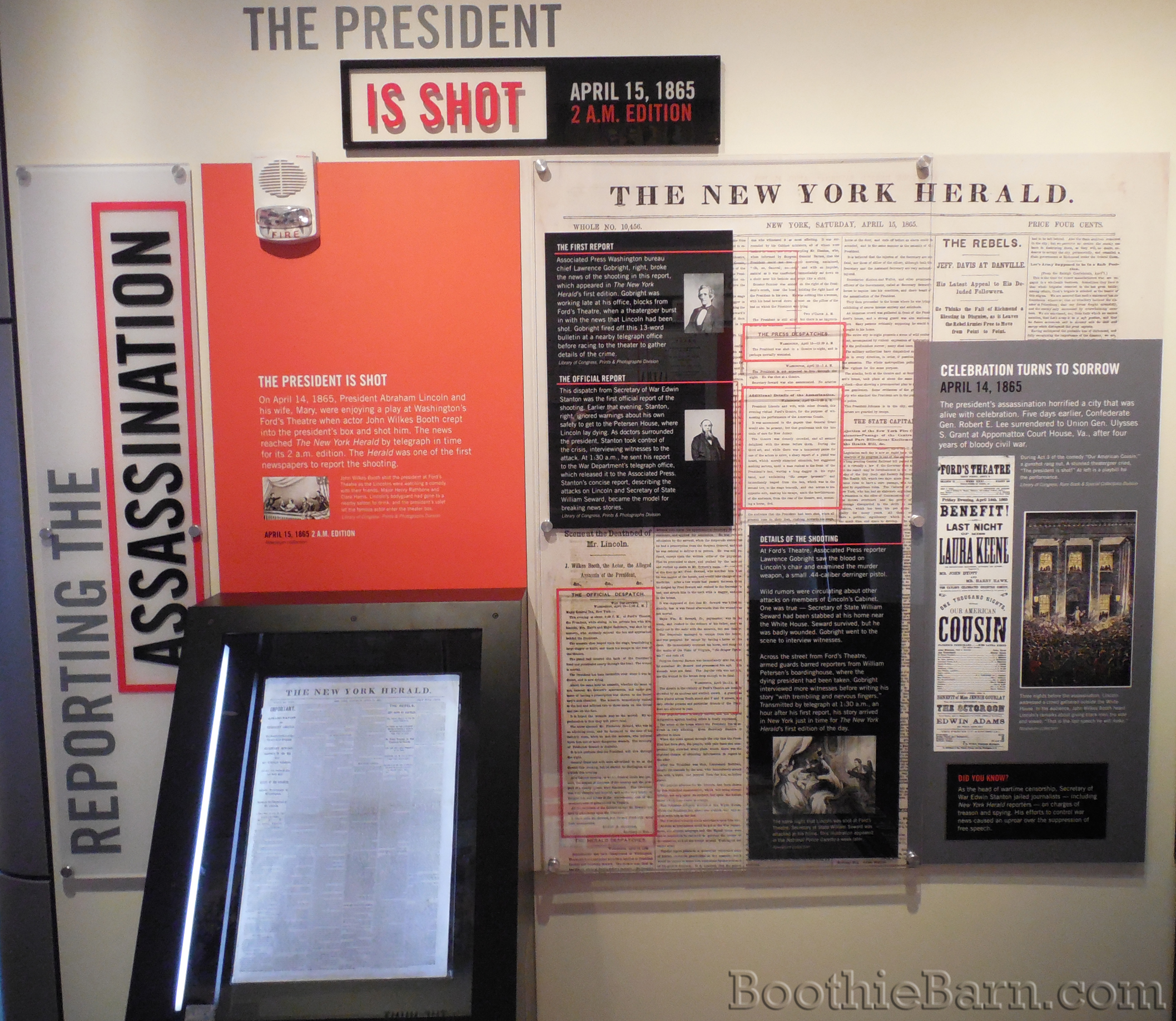 The New York Herald exhibit at the Newseum also demonstrates how the newspapers covering Lincoln’s assassination made the same mistake as some modern journalists by printing unreliable or unsubstantiated claims in hopes of being the first to provide their audience with an exclusive.