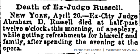 Abraham D. Russell, the city judge of New York City, testified that he was well acquainted with the handwriting of U.S. Congressman Benjamin Wood, having received frequent letters from him. Russell looked that the draft for $25,000 bearing Wood’s signature and gave his strong opinion that it was authentic. [9] The testimonies of Eastwood, Wilkes and Russell were partly to show the vast funds available to the Confederate Secret Service in order to carry out clandestine activities that may have included Lincoln’s assassination, but were also intended to sully the reputation of Congressman Wood who had long been considered a traitor for his overt Southern sympathies during the war. In truth, none of the witnesses who testified on this day had any real connection to John Wilkes Booth and his plot.