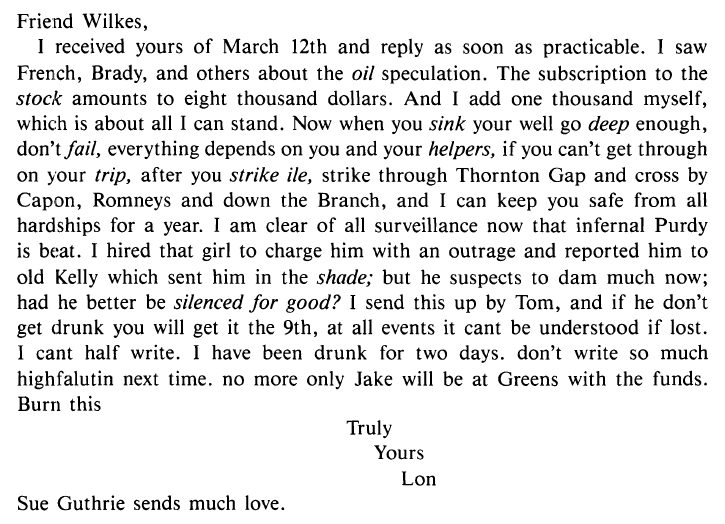 Robert Purdy, a self-described Union scout and detective, was called by the prosecution in regards to Exhibit 76, the “Lon” letter addressed to J.W.B. at the National Hotel. This letter appeared to be written by an unknown conspirator named Lon to Booth and alluded to other conspirators ready to assist in a coded plot.