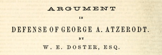 William Doster presented his closing arguments on behalf of his client George Atzerodt. The argument can be read in full by clicking here or on the image above. Doster opened his argument with a statement from Atzerodt himself. Doster had tried over the course of the trial to get Atzerodt’s confession on the record, but had been unsuccessful. In his statement, Atzerodt stated the following: