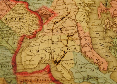 The map of Maryland with Dr. Blandford’s notations (pictured above) was entered into evidence as Exhibit 77. Dr. Blandford’s hand drawn plat of the road leading to Bryantown (pictured below) was entered into evidence as Exhibit 78.