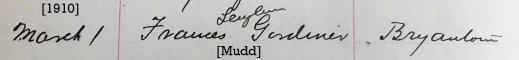 [Sarah Frances] “Fannie” Mudd, Dr. Mudd’s sister, testified that she had seen her brother at their father’s farm on March 2nd – 5th. Fannie recounted that one of their sisters fell ill on Ash Wednesday which was March 1st. Since her condition did not improve, the next day they sent for Dr. Mudd and he spent the next three days visiting his sister and tending to her. This testimony was to disprove the prior testimony of Marcus P. Norton who claimed Dr. Mudd entered his room at the National Hotel on March 3rd, looking for John Wilkes Booth. The testimony also worked to counter the prior witness Rev. Evans who claimed to have seen Dr. Mudd in D.C. around the same time. Thomas Ewing also asked Fannie if she had ever heard of any men hiding out in the words near her brother’s farm. She recounted that such an event only occurred in 1861 and that she had never seen John Surratt at her brother’s farm. This was to counter the testimony of Mary Simms who testified otherwise. Fannie stated that she saw John Wilkes Booth only once and that it was in November of 1864, when Booth attended St. Mary’s Church with Dr. Queen.[11] Fannie went on to marry married another trial witness, Thomas Llewellyn Gardiner.