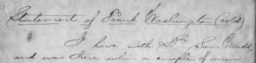 Frank Washington, an African American servant of Dr. Mudd’s who had formerly been enslaved by him, was recalled the stand by the defense after previously testifying on May 27th. Frank was the husband of former witness, Betty Washington, and was likewise asked about Dr. Mudd’s whereabouts on March 1 – 5th. Frank testified that he had seen Dr. Mudd at his home every day during that time period. The two men worked together in the tobacco beds and stripping tobacco. Frank testified that Dr. Mudd went to his father’s house for dinner on Friday, March 3rd. Thomas Ewing was using Washington’s testimony to counter the discredited claims of Marcus Norton and Rev. William Evans the latter of which stated he had seen Dr. Mudd enter Mary Surratt’s boarding house around this time. During cross-examination, the prosecution, once again, focused on Dr. Mudd’s whereabouts on Thursday, March 2nd. Like his wife before him, Frank Washington stated that Dr. Mudd had breakfast at home that day.[19] This ran contrary to the earlier testimonies of Fannie and Emily Mudd who claimed Dr. Mudd was at his father’s house for breakfast that morning. It was clear that one of the pairs, either the Mudds or the Washingtons, were incorrect in their story of where Dr. Mudd breakfasted that day. While the prosecution seized on this inconsistency, it didn’t really do much to restore the credibility of their own battered witnesses, Norton and Evans.