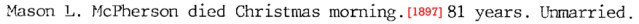 Mason L. McPherson, a resident of Charles County, Maryland, testified that he lived about three quarters of a mile from Bryantown and that he visited the village on April 15th. McPherson stated he was in the village for about 5 hours during that day but that he was never able to learn the identity of Lincoln’s assassin. McPherson claimed he talked to both the soldiers who were stationed there and the citizenry but all he heard was that a man named John Boyle had assassinated the Secretary of State. McPherson also gave his opinion regarding the poor reputation of Daniel Thomas, one of the prosecution’s witnesses against Dr. Mudd.[21] McPherson followed the route of many of Ewing’s witnesses in attempting to cast doubt on the testimony of Lt. David Dana who stated the whole village of Bryantown knew that Booth was the assassin by 1:15 pm that day.