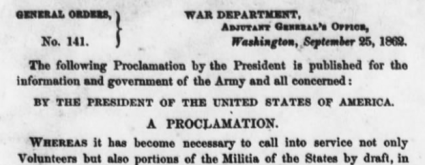 Judge Advocate General Joseph Holt offered into evidence General Orders No. 141 dated September 25, 1862. These orders from President Lincoln, ordered that “all rebels and insurgents, their aiders and abettors” were, “subjected to martial law, and liable to trial and punishment by courts-martial or military commission.” The orders also suspended the writ of habeus corpus to, “all persons arrested…by any military authority, or by the sentence of any court martial or military commission.” In addition to these orders, JAG Holt included a certificate from Edwin Stanton dated May 30, 1865, verifying that the legitimacy of the orders.